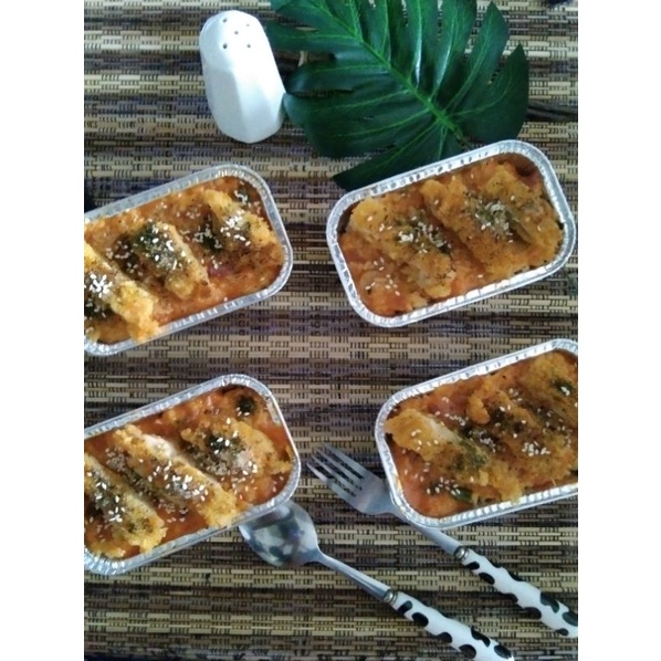 Nasi Dengan Isian Sosis, Kornet, Di Kasih Saos Mentai & Potongan Chicken Katsu