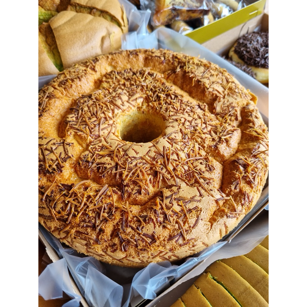 Dengan tambahan topping Cheese yang melimpah dibagian dalam dan luar cake, tekstur chiffon yang empuk enggak perlu effort ngunyah langsung lumer dimulut