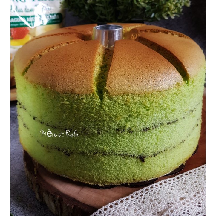 Pandan chiffon cake ini enak banget. Teksturnya lembut dan lembab dengan wangi pandan asli yang aduhai.. Cake ini lebih sehat karena tidak mengandung pengembang kimiawi apapun. Selain itu, ia juga tidak mengandung lemak berlebih dari butter karena menggunakan minyak goreng. Rasanya lebih ringan di lidah. Chiffon cake ini mengandung oreo bubuk di tiap lapisnya..