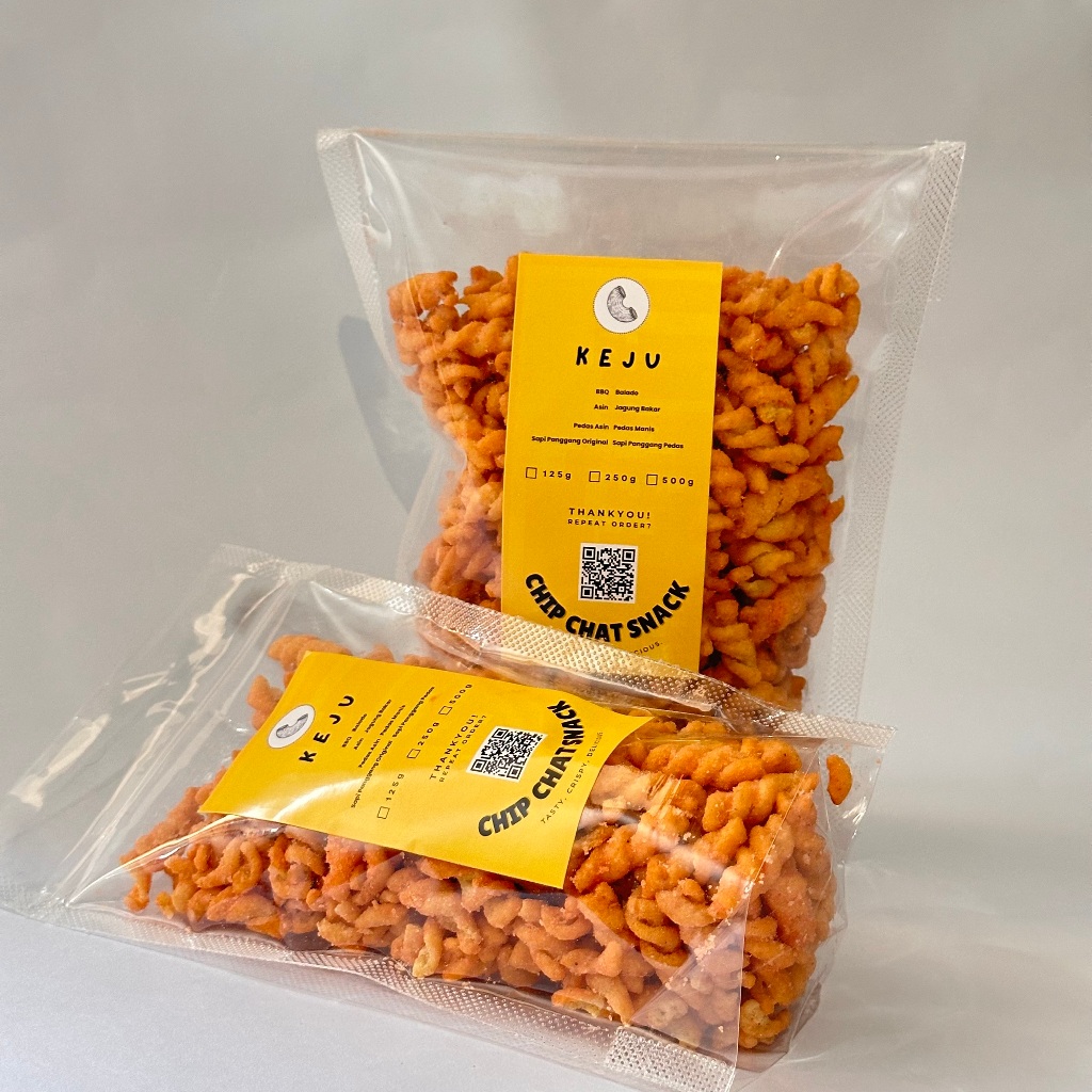 Makaroni Chip Chat Snack tersedia dalam tiga ukuran : 125 gram, 250 gram, 500 gram