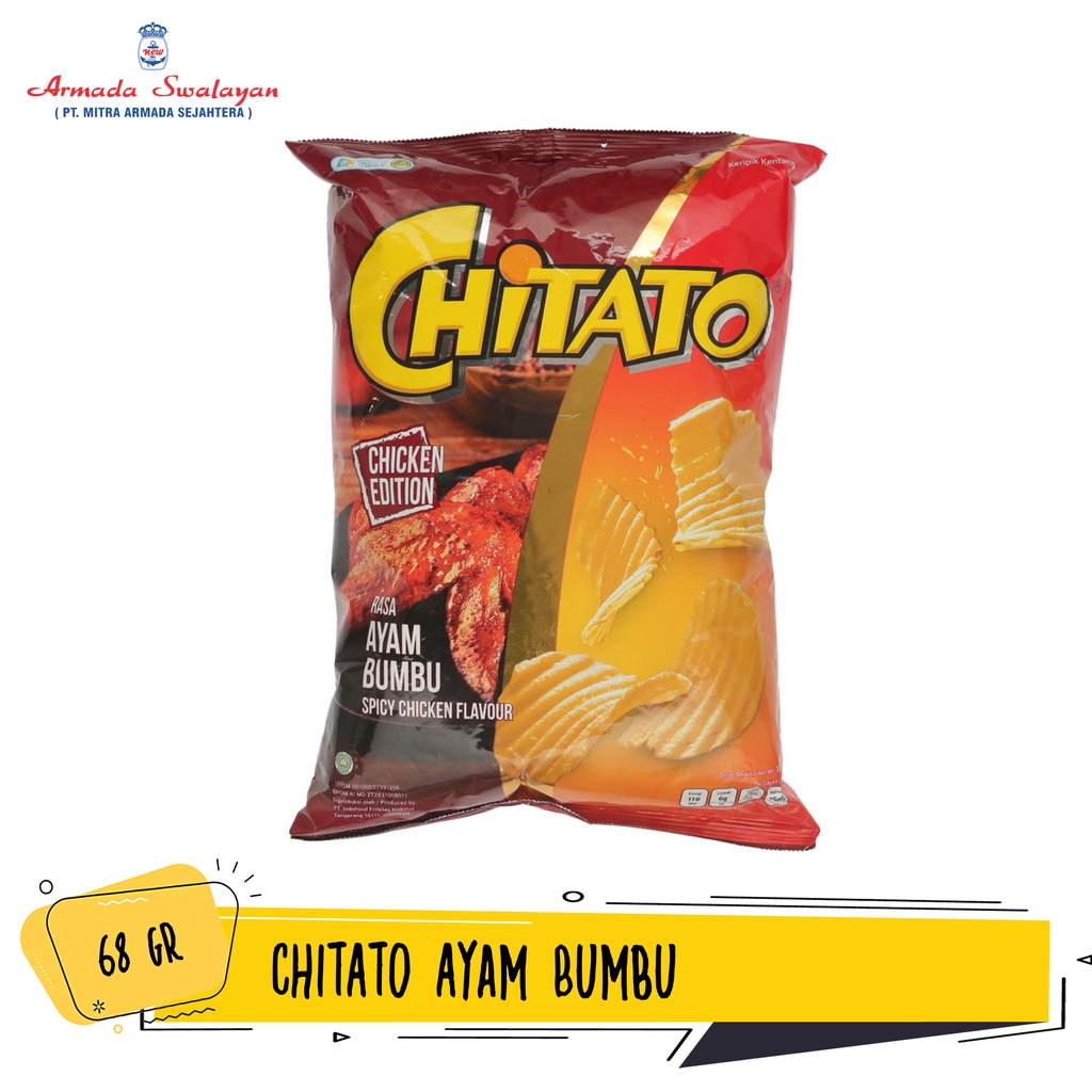 Chitato terbuat dari kentang segar yang diiris bergelombang dan dibumbuhi dengan bumbu dari seluruh dunia. Keripik kentang Chitato dibuat dari kentang berkualitas yang menghasilkan rasa gurih. Renyahnya keripik menyatu dengan taburan bumbu spesial. Life is never flat!