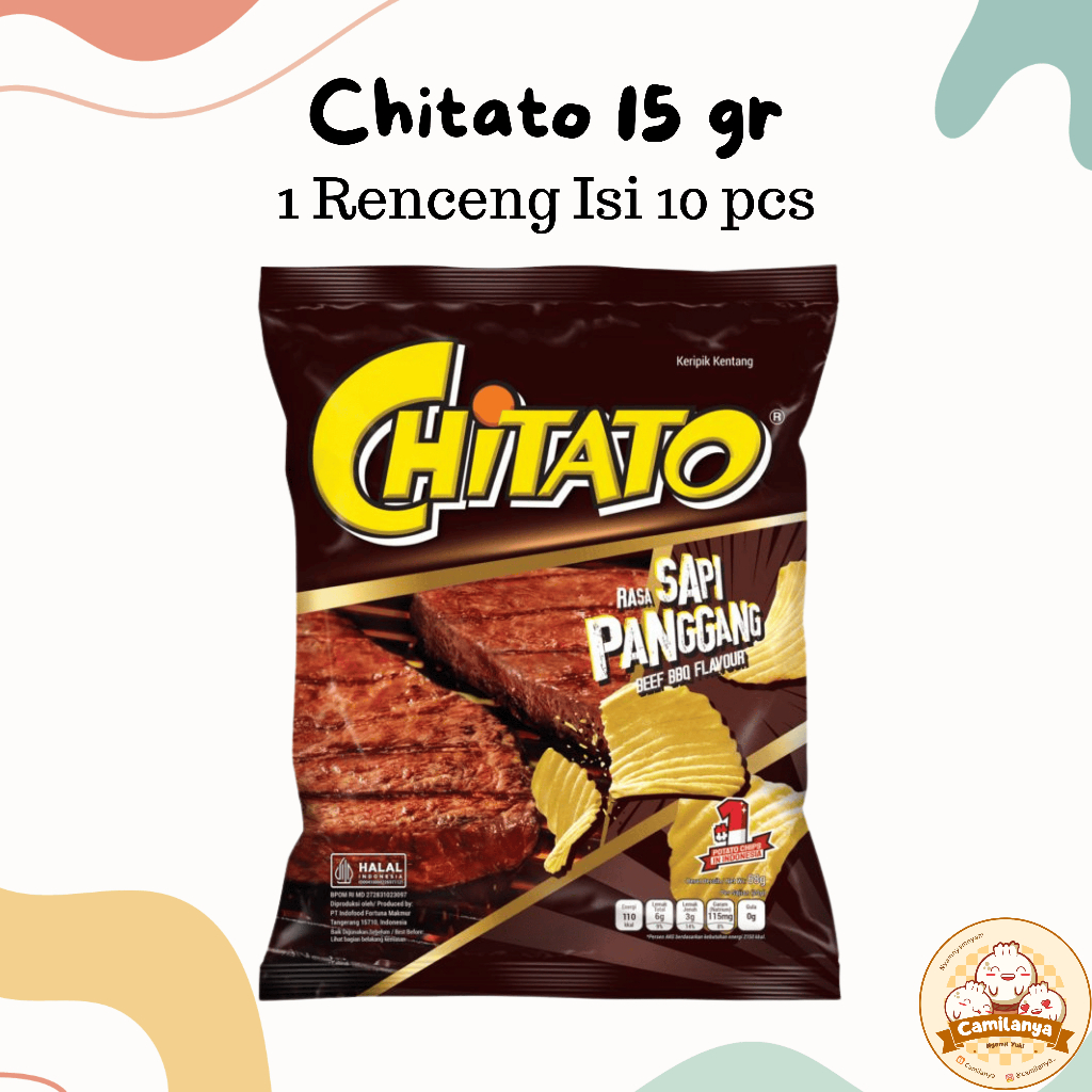 Chitato snack potato terbuat dari kentang asli dengan potongan bergelombang yang hadir dalam rasa sapi panggang yang tebal dan kuat untuk memberikan pengalaman baru dalam setiap gigitannya. Keripik kentang Chitato diproses secara higienis dan modern.