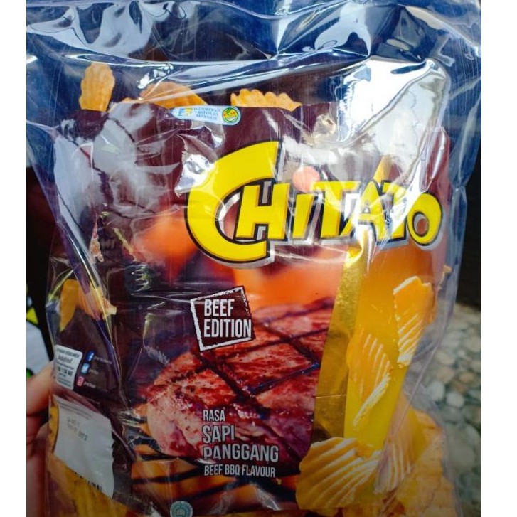 Chitato Sapi Panggang. Keripik kentang CHITATO dengan rasa sapi panggang. Dibuat dari kentang berkualitas yang menghasilkan rasa gurih. Renyahnya keripik menyatu dengan taburan bumbu sapi panggang.