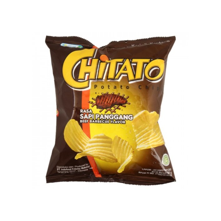 Chitato Beef Barbecue atau Rasa Sapi Panggang adalah flavor paling populer. Rasa bumbu barbecue yang begitu kuat dan tebal memberikan pengalaman yang luar biasa di mulut dan pikran mu. Begitu nikmat dan menggoda untuk segala suasana. Bernetto 15 gram perbungkusnya. Beratribut Halal MUI dan BPOM