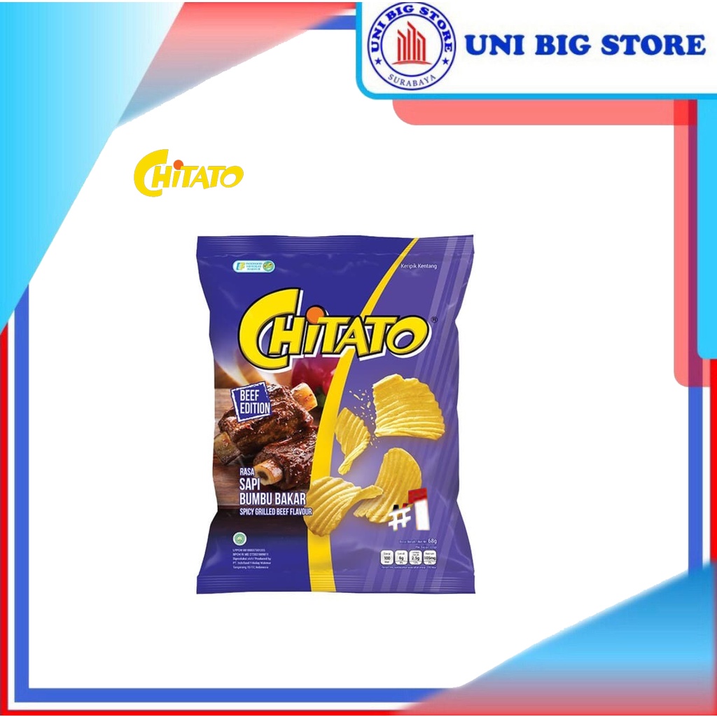 Chitato merupakan snack yang dibuat dari bahan kentang sehingga lebih gurih renyah dan mengenyangkan Irisan kentang bergerigi ciri khas Chitato ini dibalur dengan dan bumbu yang gurih lezat hingga ke irisan terakhirnya.