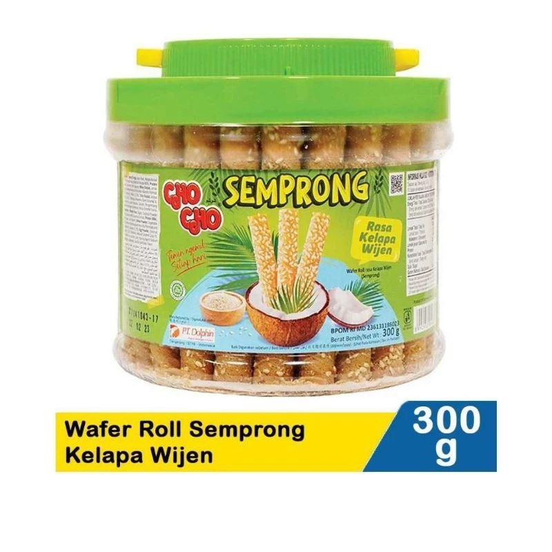 Cho cho wafer roll semprong (300 gr) merupakan wafer dengan campuran rasa kelapa wijen yang renyah dan lezat. cocok untuk teman ngemil bersama keluarga atau teman. cocok juga dipadukan ketika minum teh bersama.