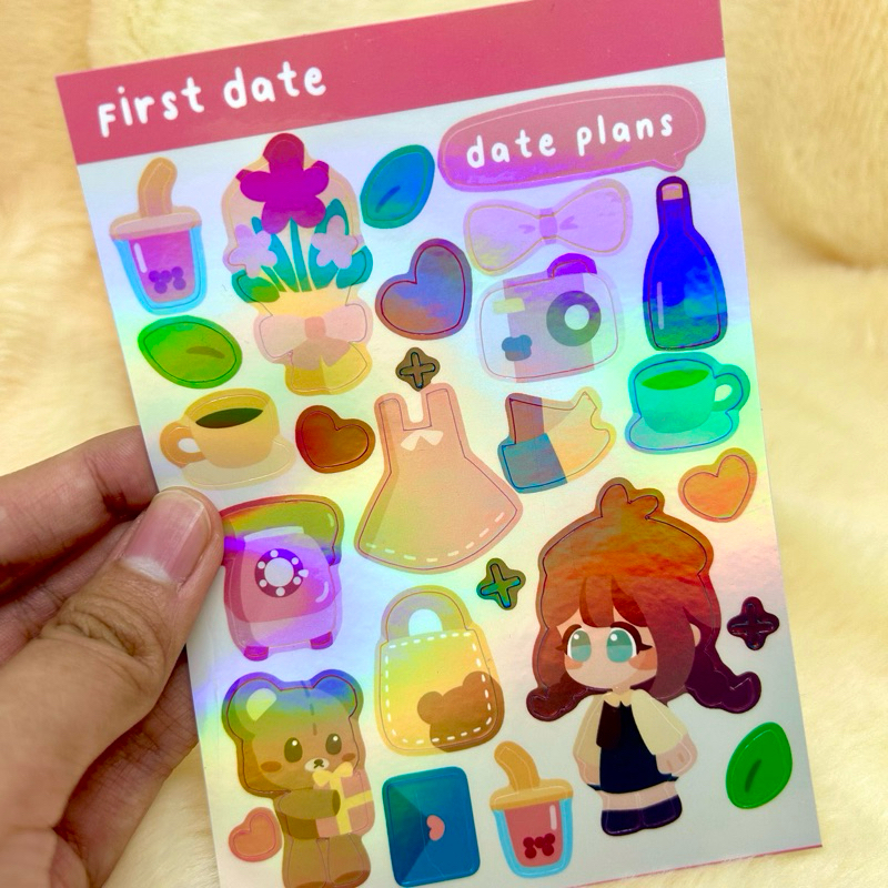 Relive your first date memories in a journal decorated with this sticker sheet!