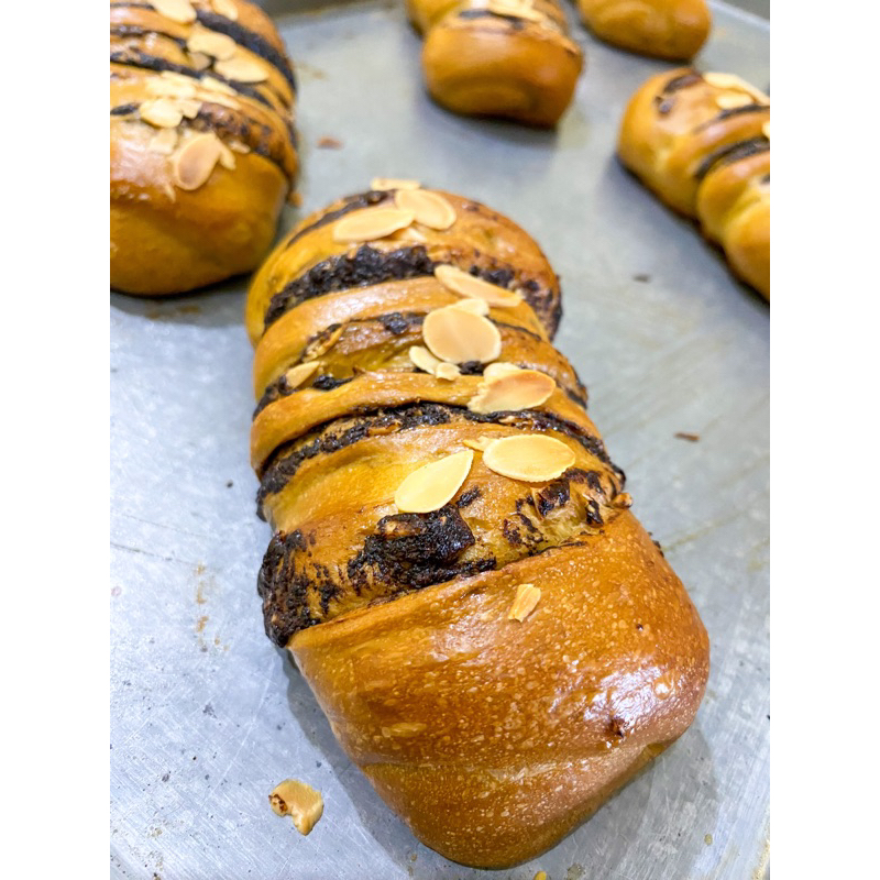 Menggunakan bahan premium dengan isian full coklat dan topping Almond yang melimpah