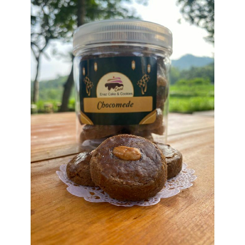 Cookies rasa coklat dengan kandungan DCC di dalam adonan serta toping kacang mede, bagi penggemar coklat wajib dicoba