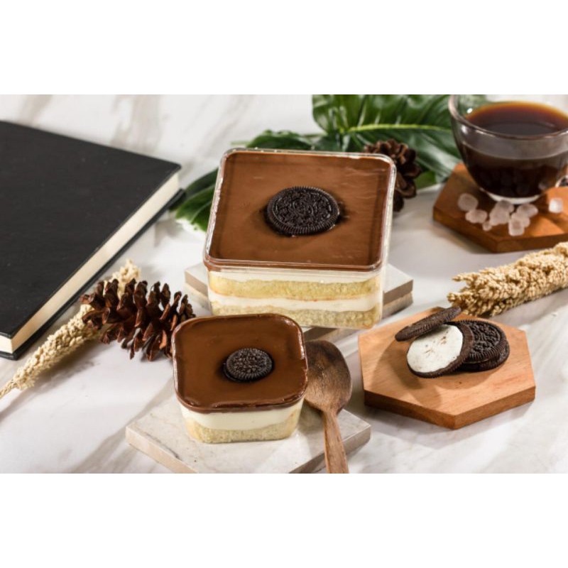 butter cake super moist berlapis white cream yang super light dan juga coklat ganache super nyoklat dengan toping oreo crunchy diatasnya