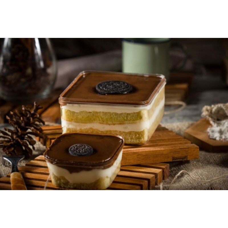butter cake super moist berlapis white cream yang super light dan juga coklat ganache super nyoklat dengan toping oreo crunchy diatasnya
