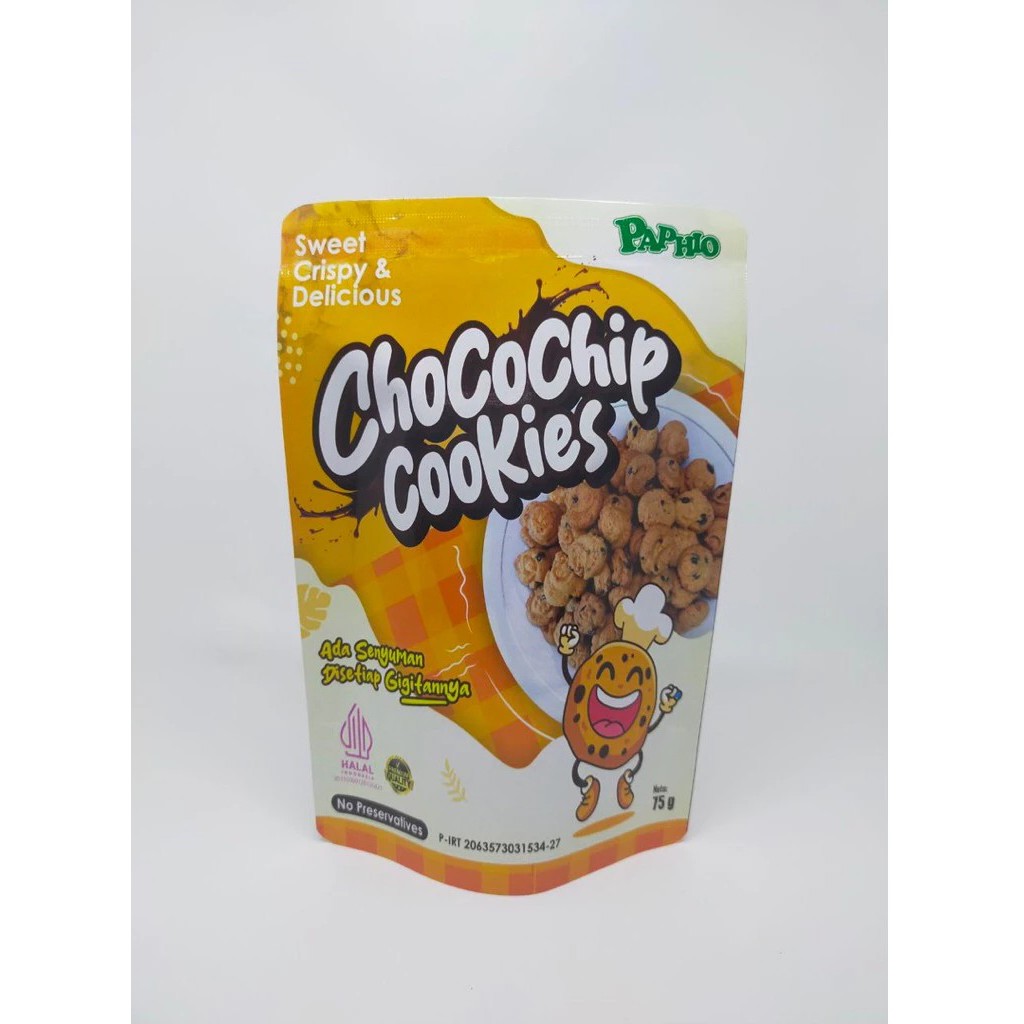 Choco Chip Cookies adalah snack dari Paphio berupa biskuit renyah dengan choco chip yang melimpah, menghadirkan kenikmatan rasa manis dan renyah di setiap gigitannya.