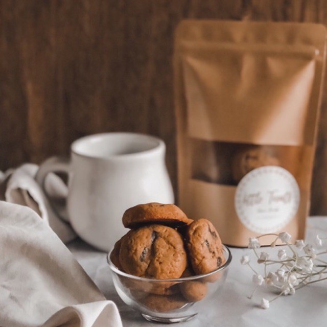 Choco Chunk Cookies dapat disimpan di dalam packaging (ziplock pouch) atau airtight container dan tahan hingga 14 hari dari tanggal produksi.