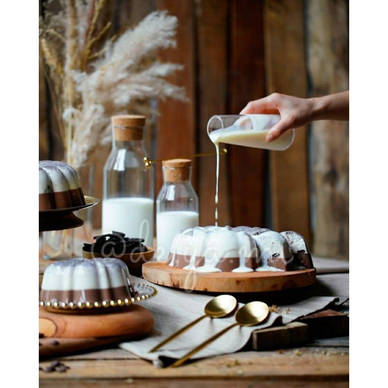 Pudding susu yang lembut dengan biskuit oreo dan coklat dengan fla vanilla.