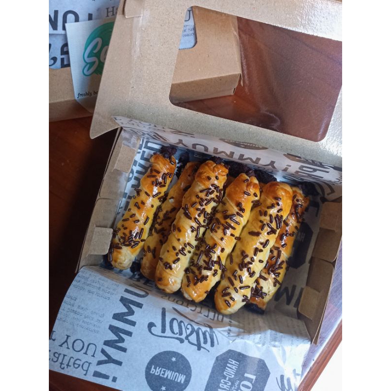 coklat stik yang dililit dengan kulit pastry yg renyah & gurih