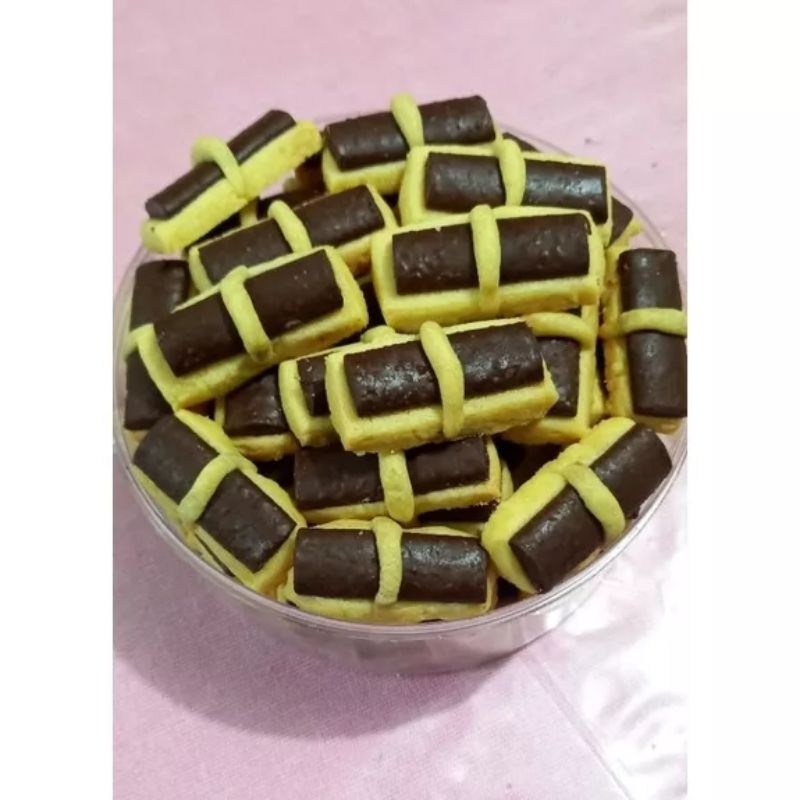 Kue kering dengan coklat stick diatasnya