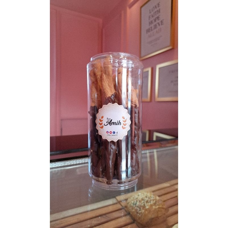 Stick pastry ditambah dengan coklat belgian dengan terkstur yang crunchy