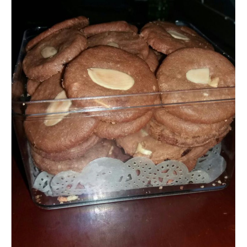 Kue kering coklat dengan tambahan chocochip dan almond. Rasanya manis gurih.