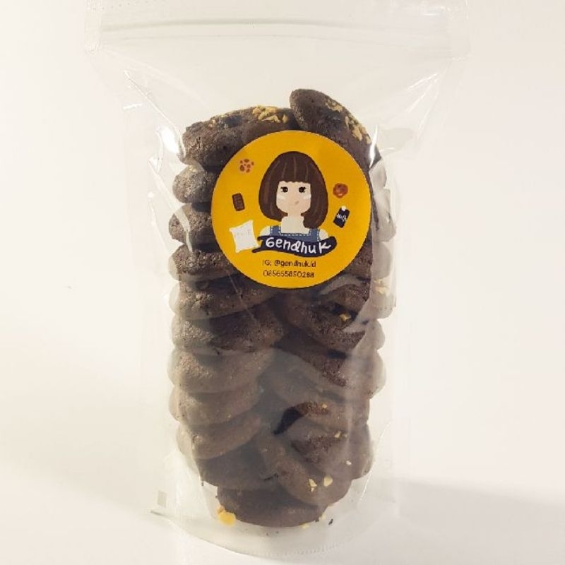 Chocolate cookies renyah dengan potongan coklat di dalamnya.