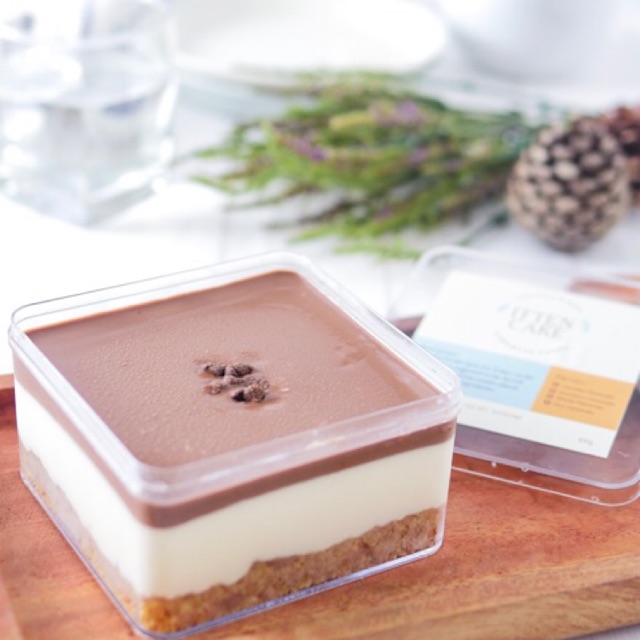 Terdapat 3 layers dalam 1 box yaitu cookies, cheesecake and chocolate panna cotta. Cheesecake kami dibuat dari bahan-bahan yang berkualitas dan dibuat 1 hari sebelum pengiriman.