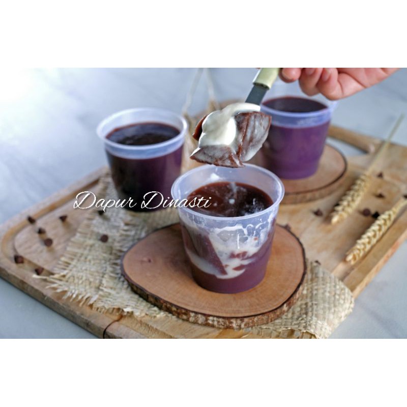 Puding coklat ultimate yang lembut, padat dan kenyal dengan vla vanila tersembunyi di dalamnya. Tersedia dalam ukuran cup. Dijual per box isi 9 cups.