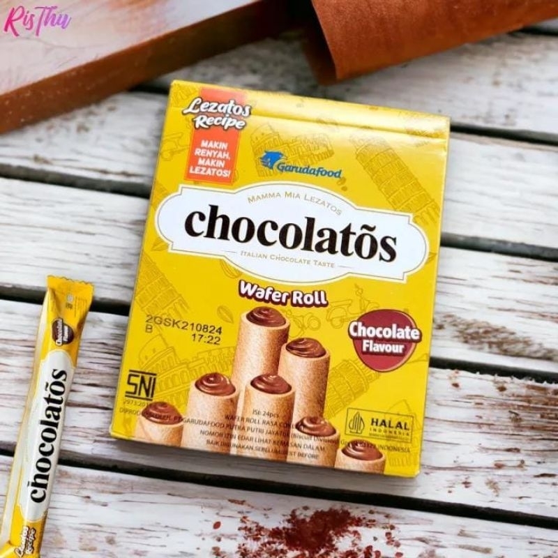 Chocolatos merupakan inovasi baru dari Wafer Stik dengan menghadirkan wafer stik yang lebih besar dan isi krim coklat yang lebih padat. Perpaduan antara wafer stik dan krim coklatnya memberikan citarasa serta kepuasan tersendiri dalam menikmati wafer stik, yang tidak dapat kita temui pada produk-produk wafer stik pada umumnya. Kombinasi wafer stik dan coklatnya merupakan perpaduan selera dan kualitas prima. Chocolatos, mama mia lezatos.