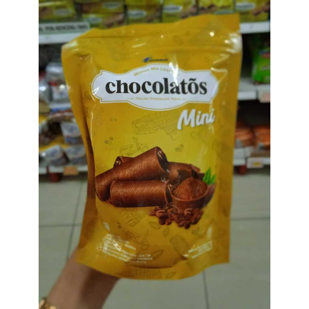 Kombinasi sempurna antara wafer Roll yang renyah dan krim cokelat yang padat dengan cita rasa khas Italianya membuat Chocolatos menjadi makanan ringan yang digemari di seluruh Indonesia. Dikemas dgn kemasan mini pouch bernetto 65 gram.