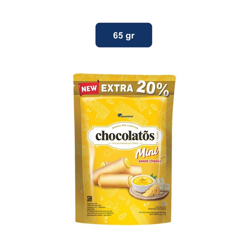 Chocolatos wafer isi coklat putih italy nikmat berpadu dengan keju manis yang memberikan kenikmatan dengan sensasi RELAX & NAGIH di kemas dalam kemasan terbaru yaitu kemasan Pouch