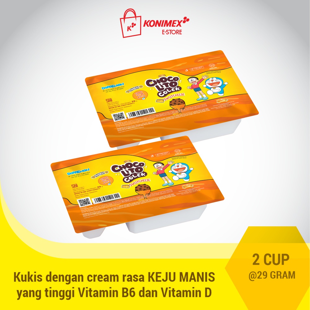 Kukis mini cokelat dengan taburan cokelat chips dipadukan dengan krim rasa keju yang tinggi Vitamin B6 dan Vitamin D.