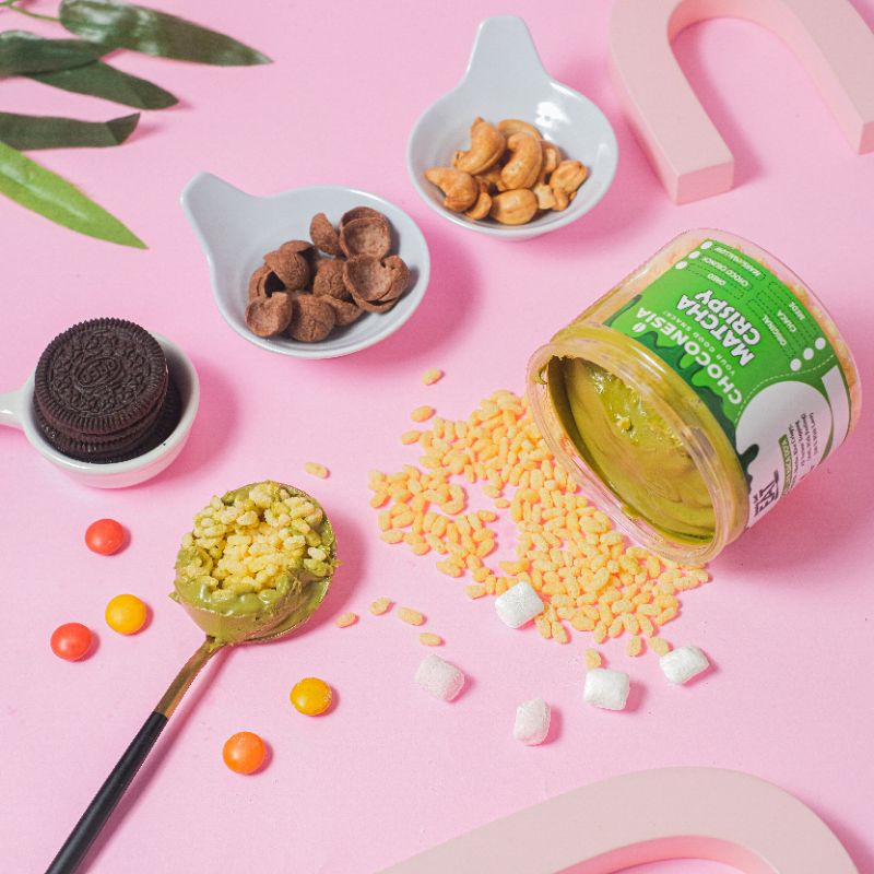 Choconesia Crispy Matcha adalah cemilan rice crispy yang dipadukan dengan varian rasa matcha dan beberapa pilihan varian topping seperti original, chacha, choco crunch, marshmallow, oreo dan kacang mede.