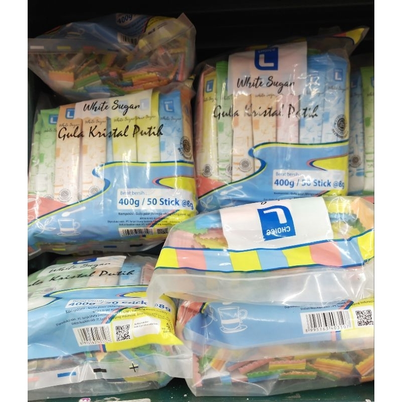 Choice L Gula Pasir Putih (White Sugar) Kemasan Stick isi 50pcs 400gr