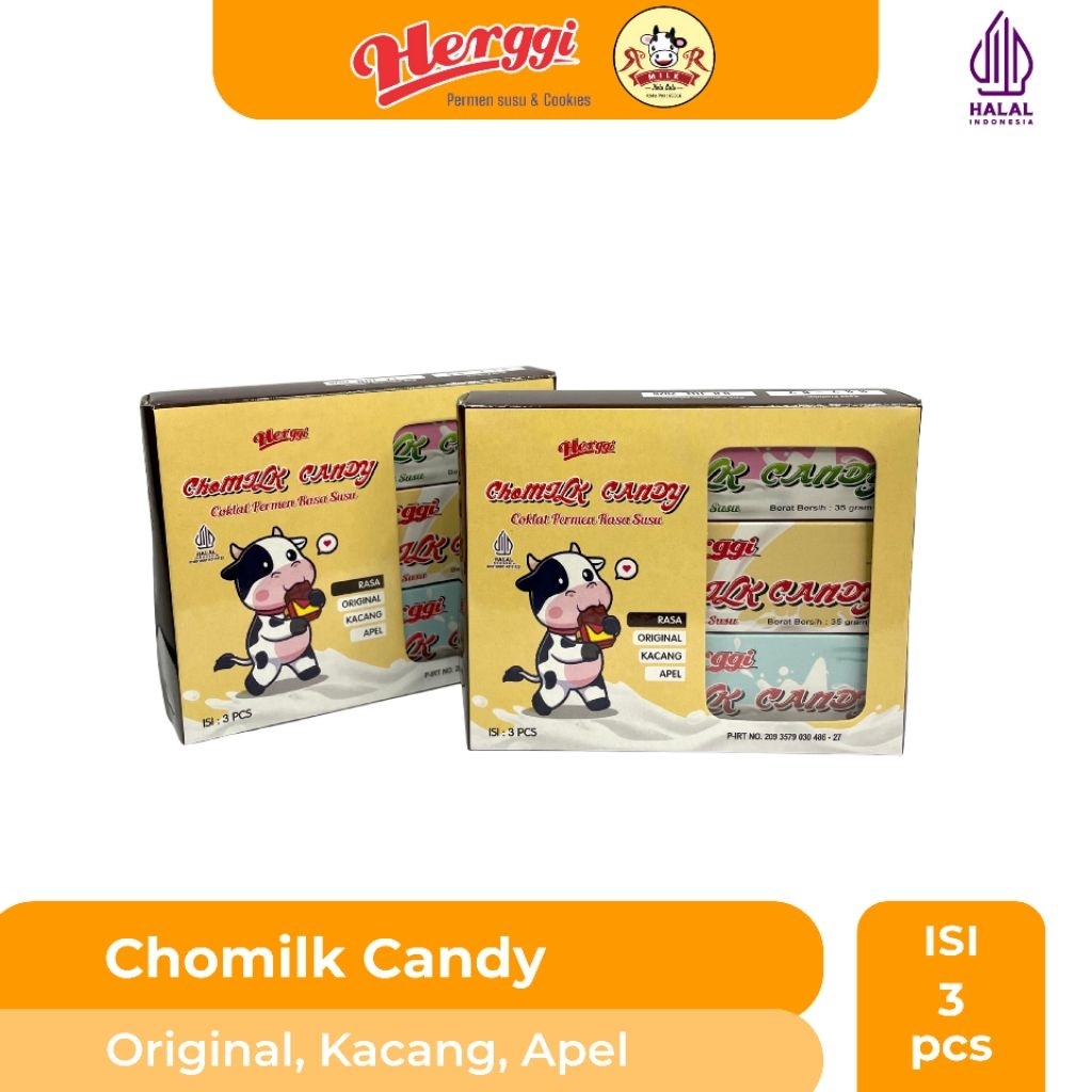 Chomilk Candy HERGGI – 35 gr | Original, Kacang, Apel | HALAL & P-IRT