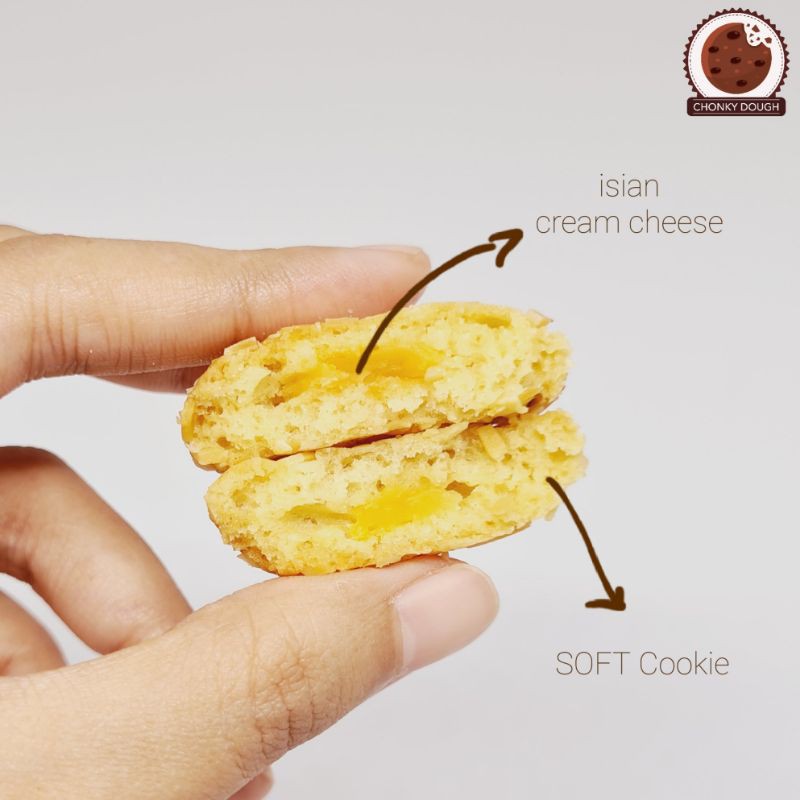 Soft cookies dengan isian cream cheese bertabur irisan almond panggang di setiap gigitan, crunchy di luar dan soft di dalam dengan taburan seasalt di atasnya.