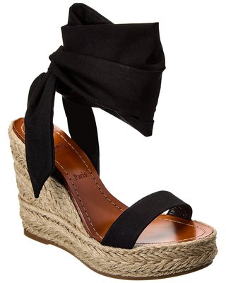 Christian Louboutin Monica Du Desert 110 Женские босоножки на танкетке из парусины, Черный, NA