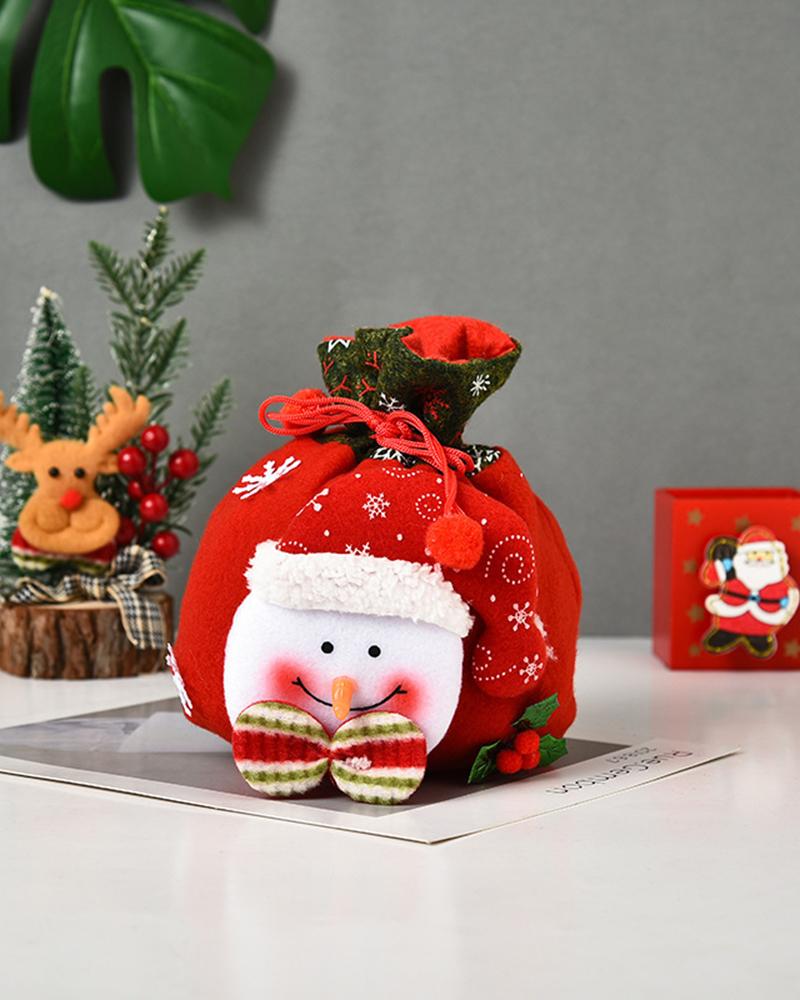 Christmas Candy Treat Gift Drawstring Cartoon Snowflake Pattern Bag, Style2