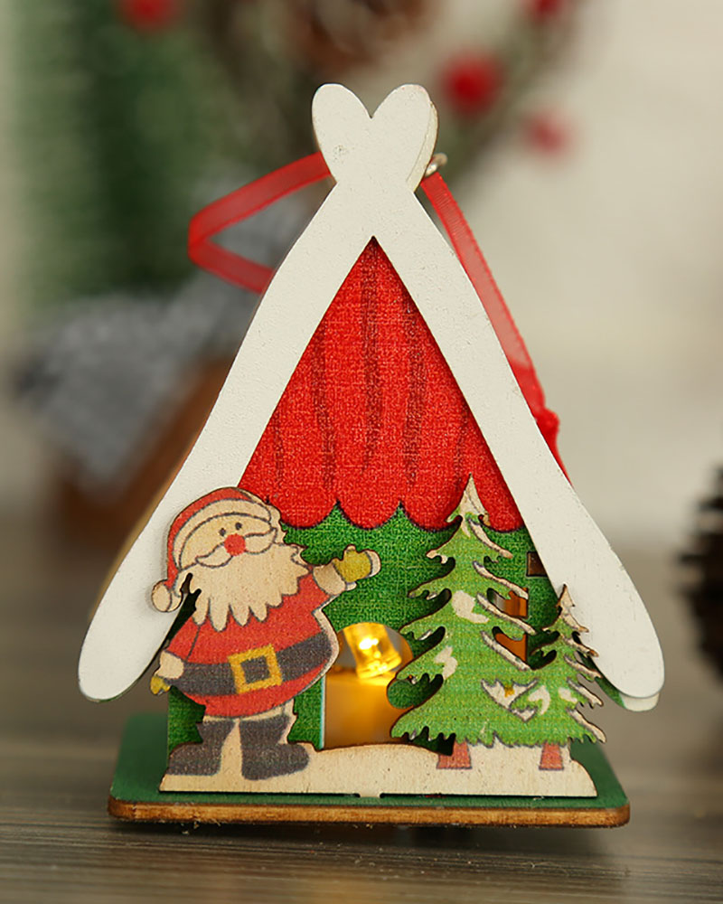 Christmas Luminous Wooden House Creative Small House Ornament Home Party Christmas Tree Pendant, Style2