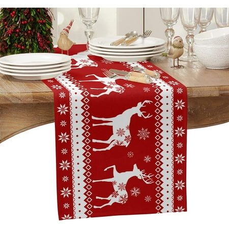 Christmas Red Snowflakes Linen Table Runners for Dining Table Wedding Decor Reusable Dining Tbale Runners Christmas Decorations