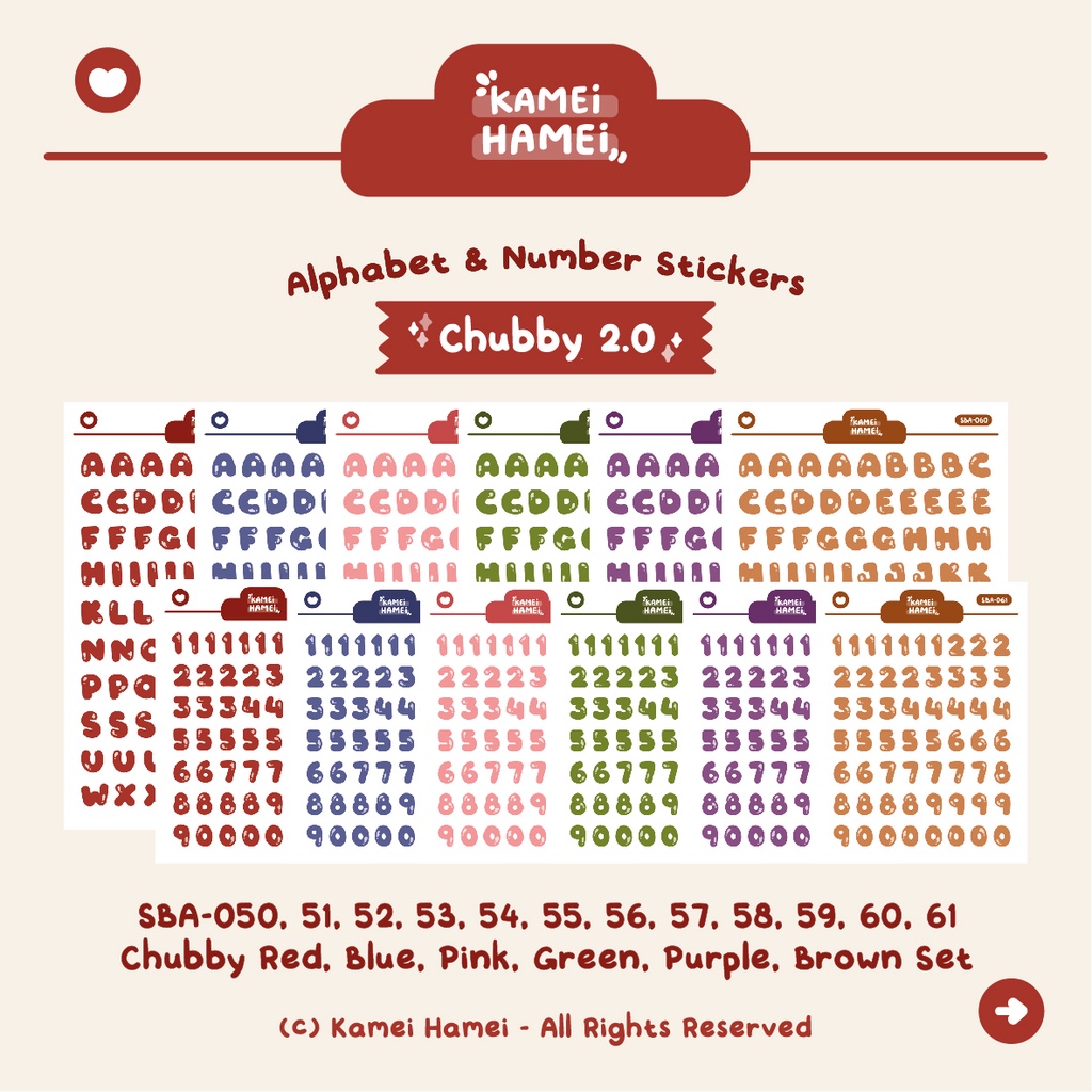 Chubby Alphanumeric Sticker 2 | Kamei Hamei Functional Planner Sticker