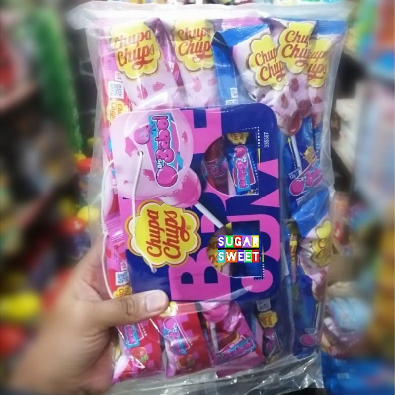 Kolaborasi rasa chupa chups dan big babol dalam permen lollipop enak.