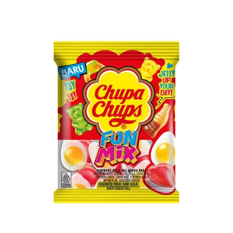 Dikemas dalam ukuran praktis, permen ini cocok dinikmati kapan saja, baik saat bersantai, menemani waktu belajar, atau sebagai camilan di perjalanan. Rasakan kombinasi rasa manis yang menyegarkan dengan tampilan menggemaskan yang membuat waktu ngemil menjadi lebih seru bersama Chupa Chups Fun Mix Permen Jeli 90 g. Dapatkan sekarang juga!