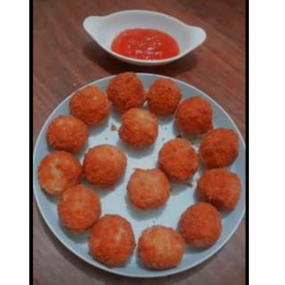 cilok isi keju cheedar yang di baluri tepung roti/panir yang semakin membuat rasa cilok renyah dan crunchy