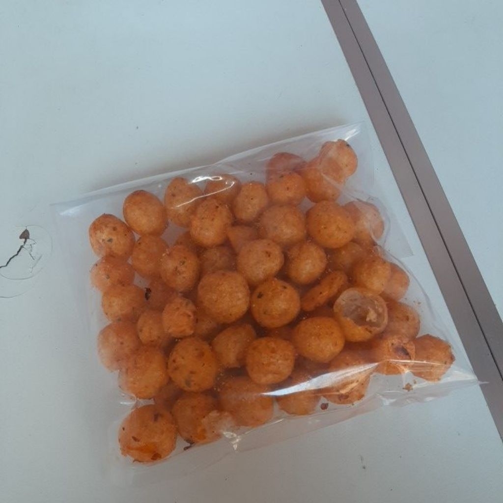 Cimol di goreng dan di bumbui dengan bumbu pedas gurih