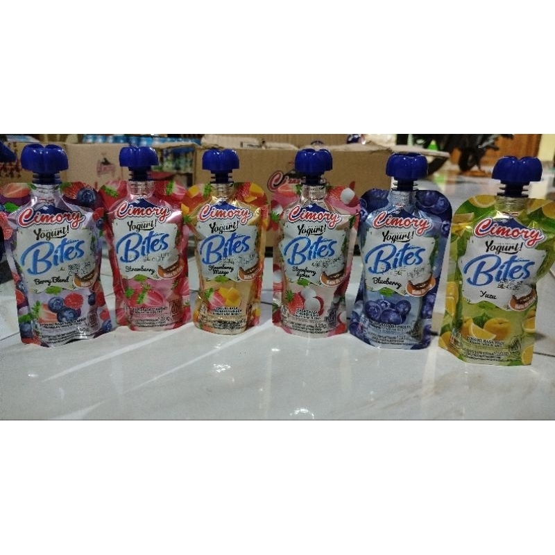 Cimory bites, yogurt yang creamy &enak yang ada tekstur kenyal nata de coco,, tersedia varian rasa: