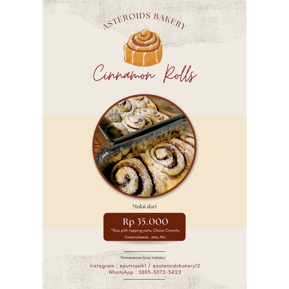 Cinnamon Roll ini tersedia dengan Topping Choco Crunchy dan Creamcheese