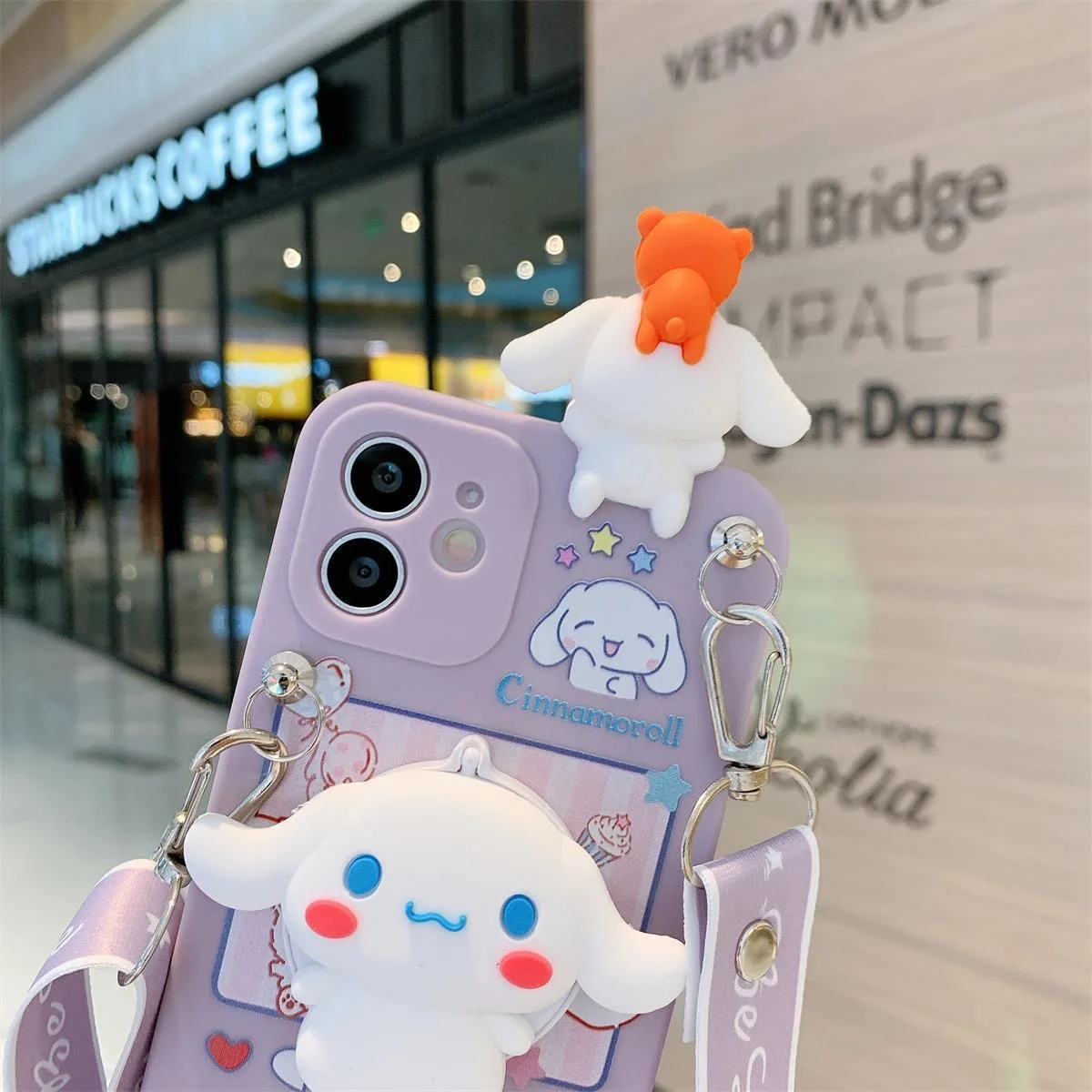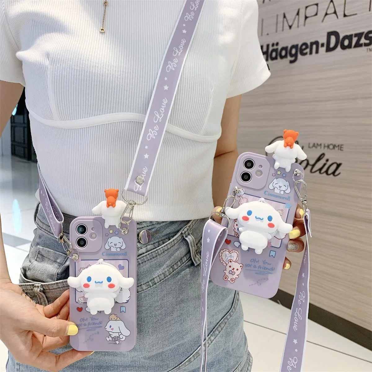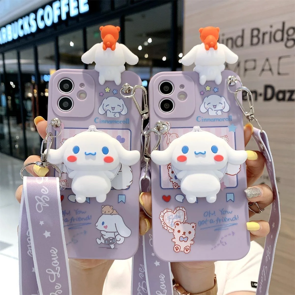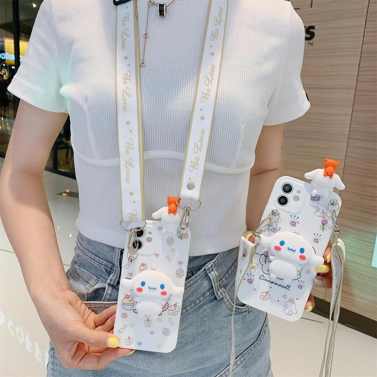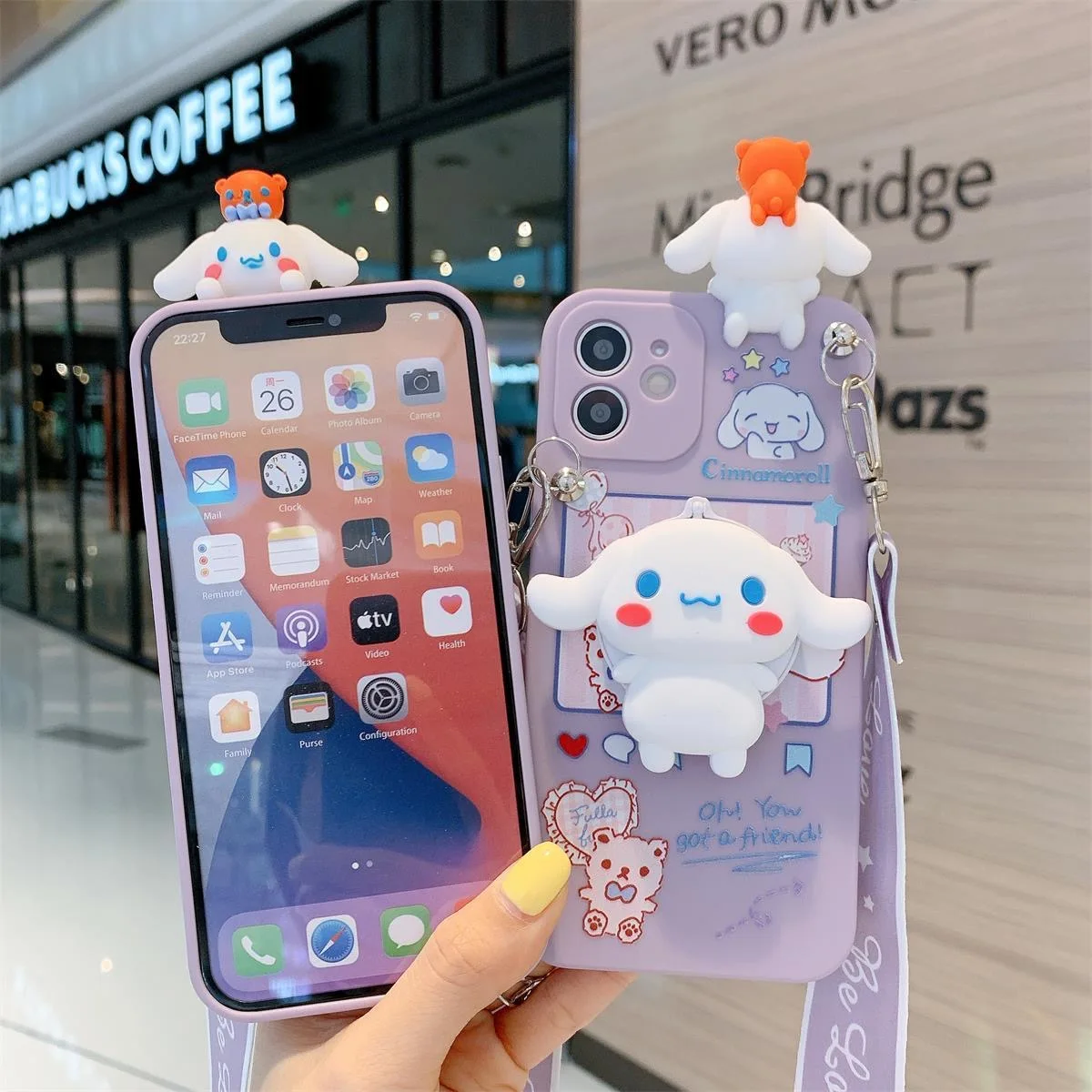 Cinnamoroll с маленьким зеркалом со шнурком, чехлы для телефонов iPhone 13 12 11 Pro Max Mini XR XS MAX 8X7 SE 2020, задняя крышка