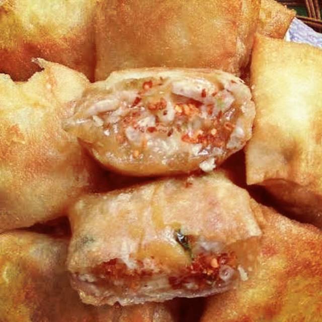 Cireng ngambay isi ayam suwir pedas.