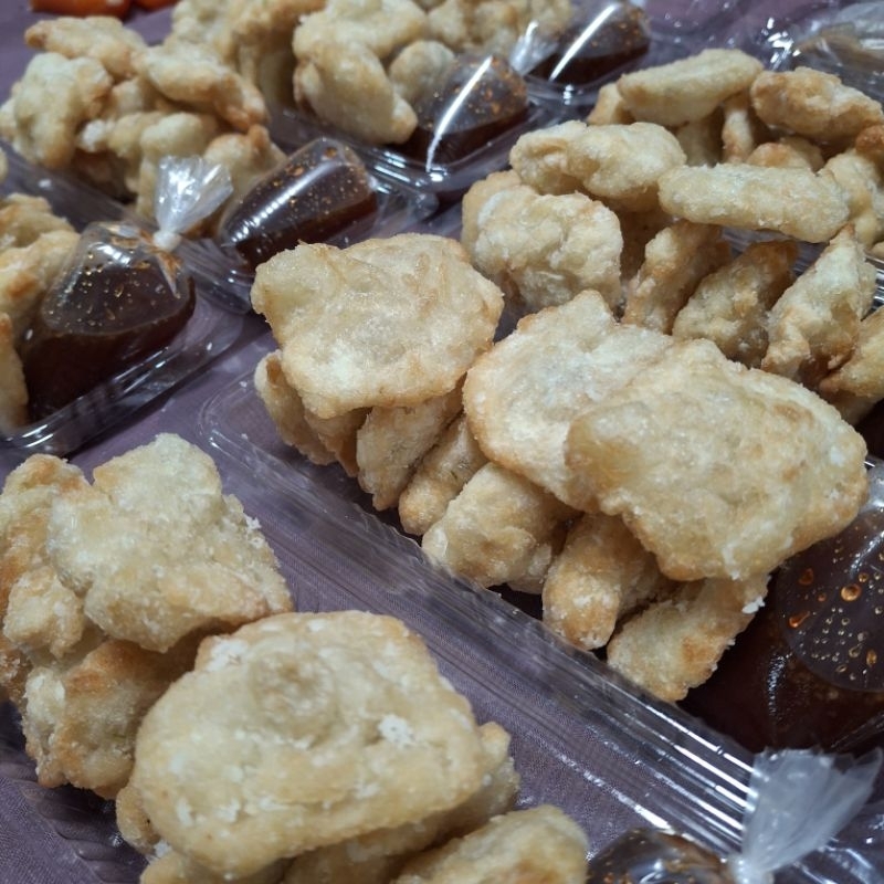 Cireng dengan aroma bawang yang khas, ada cocolan bumbu rujak.