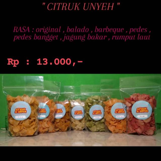 Rasa : original , barbeque , pedas , pedas bangget , balado , jagung bakar , rumput laut