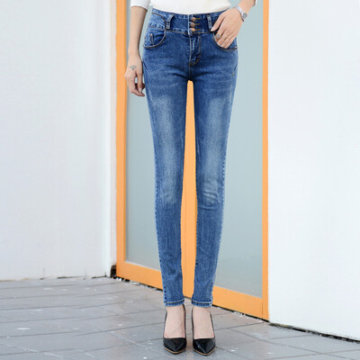 City plus CITYPLUS простой стиль высокой талии стрейч пряжки строчки Тонкий карандаш джинсы женщин CWKN16T375 синий 29