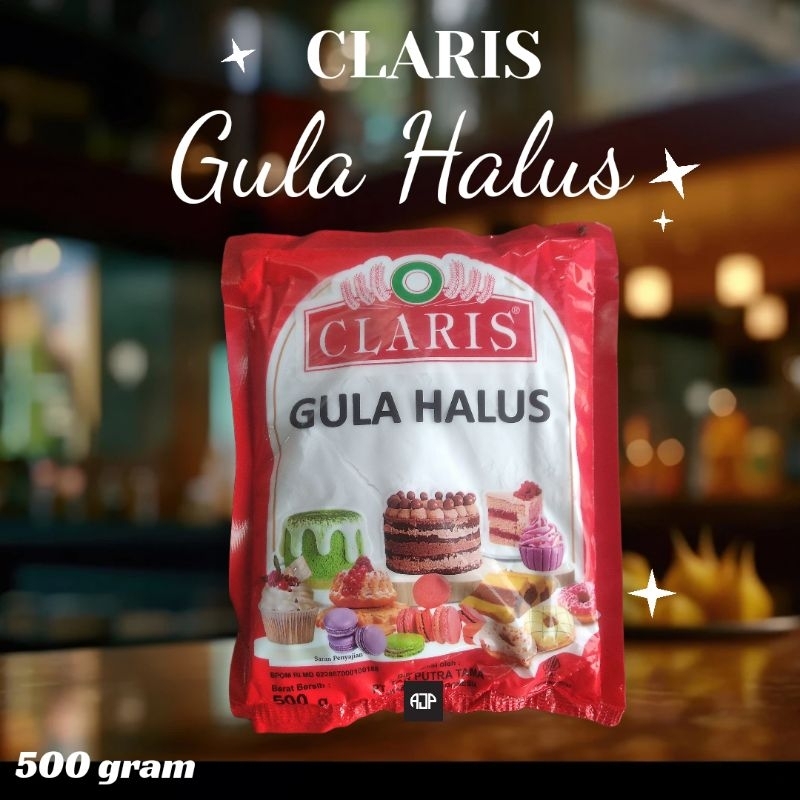 Claris Gula Halus adalah gula yang dihaluskan hingga teksturnya sangat lembut seperti bubuk, berwarna putih bersih, dan cocok digunakan untuk berbagai keperluan, seperti campuran adonan kue, menghias kue, atau sebagai taburan.